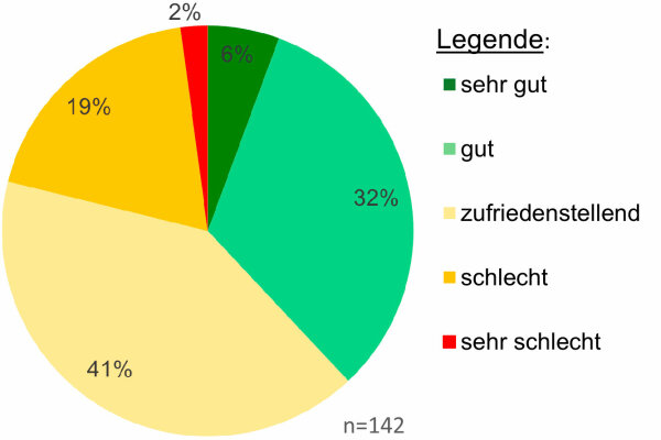 - Im Jahr 2024 bewerteten noch 51 % der Befragten diese als gut oder sehr gut, 2025 waren es noch etwa 47 %.